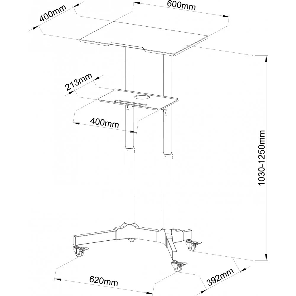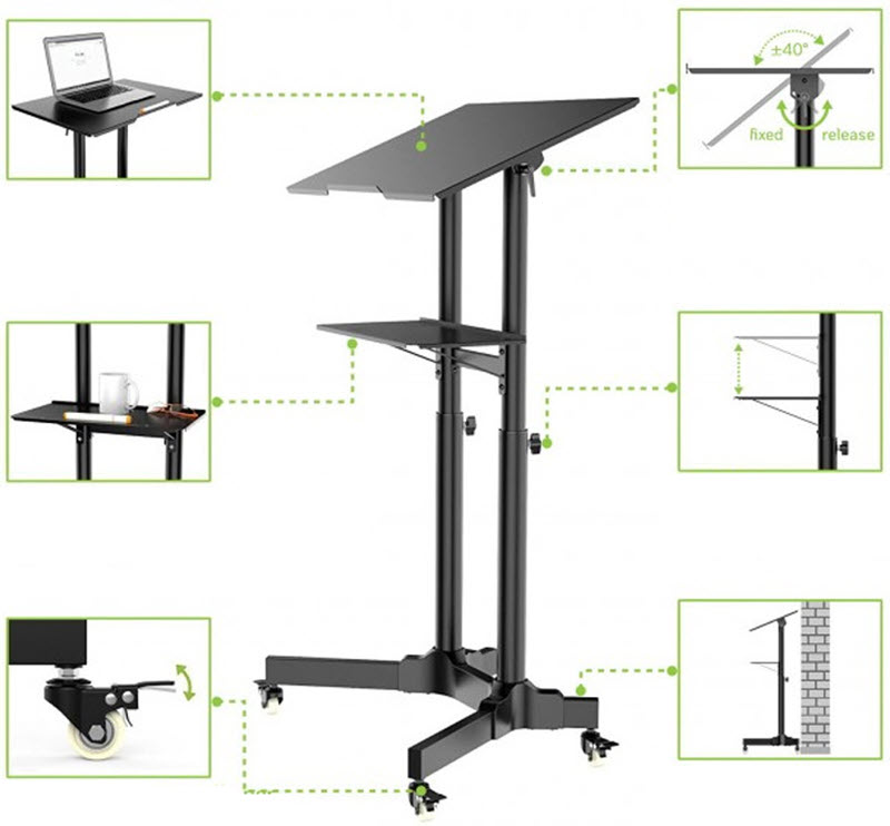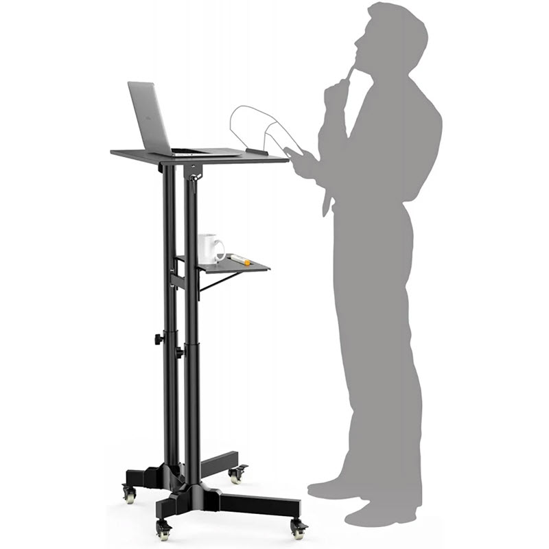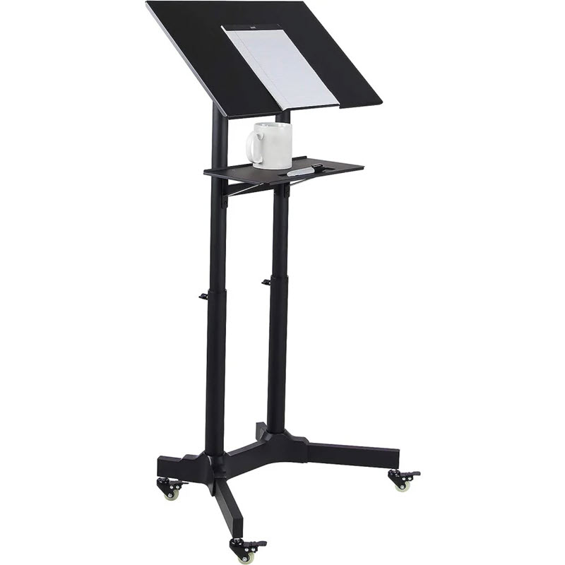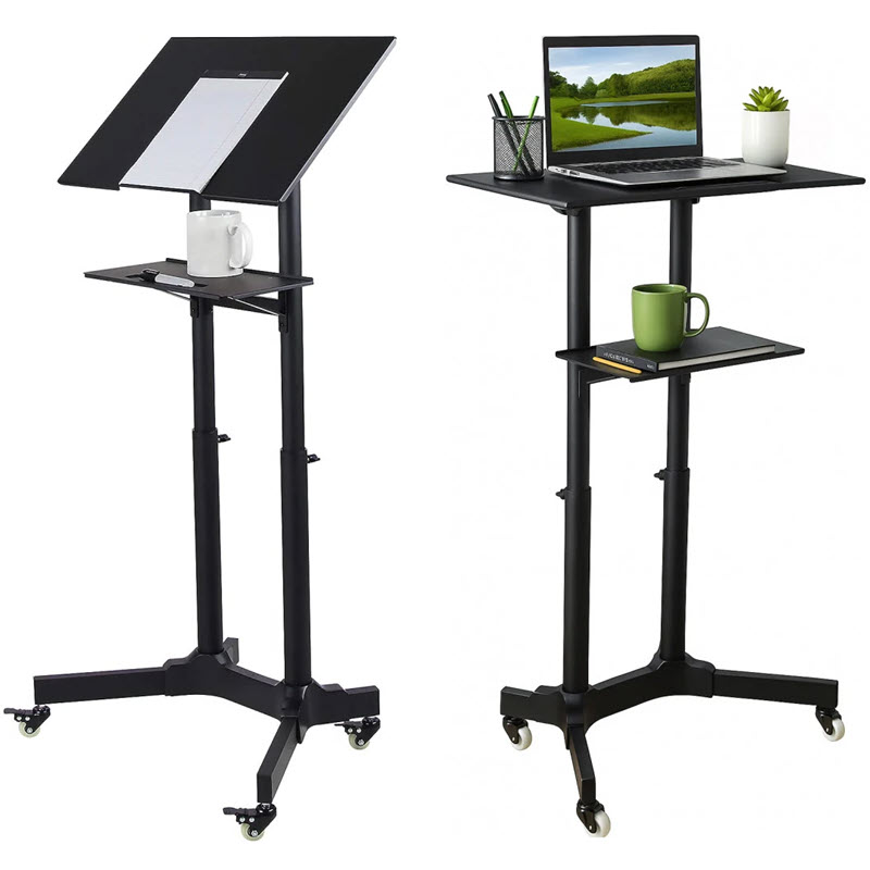 Perfekt som talarstol, podium, laptopstativ, arbetsstation för bärbara datorer, med en kompakt platsbesparande bas.