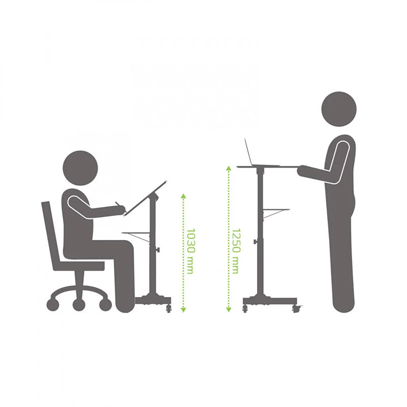 Ergonomiskt sit-stand-datorbord som gör att du snabbt och enkelt kan höja och sänka din arbetsyta till hälsosamma sit-stand-höjder, så att du kan arbeta bekvämare. Enkel höjdjustering från 1030 till 1250 mm.