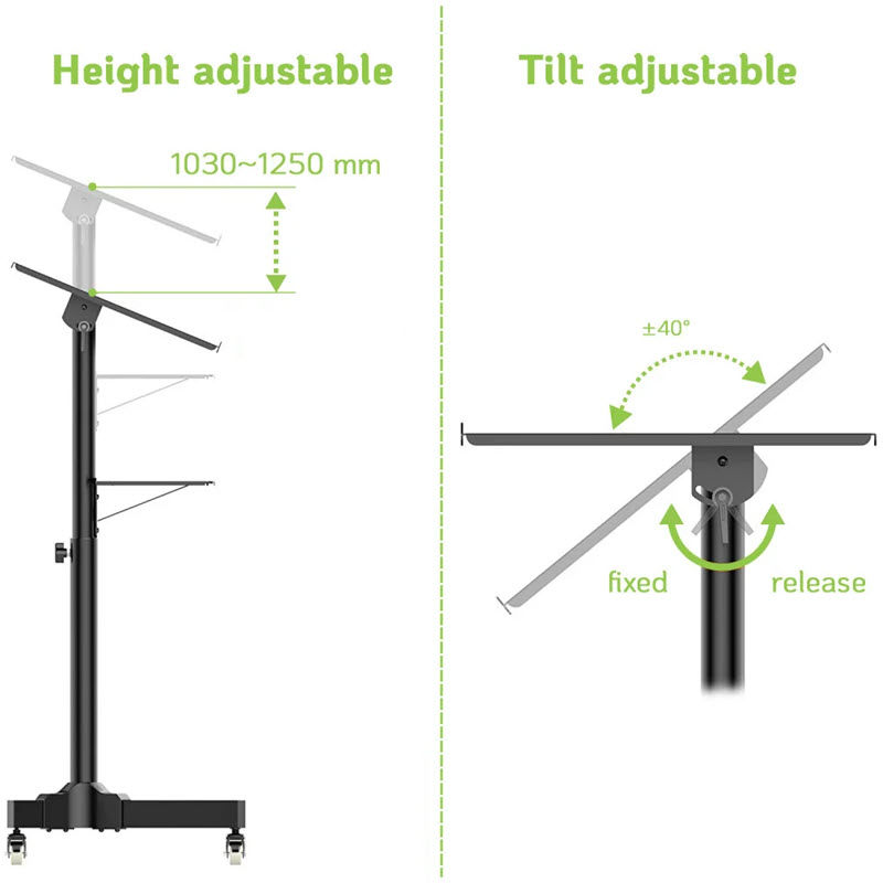 Ergonomisk arbetsstation Idealisk som talarpulpet, podium, laptopstativ, laptoparbetsplats, med en kompakt platsbesparande bas. Läs mer