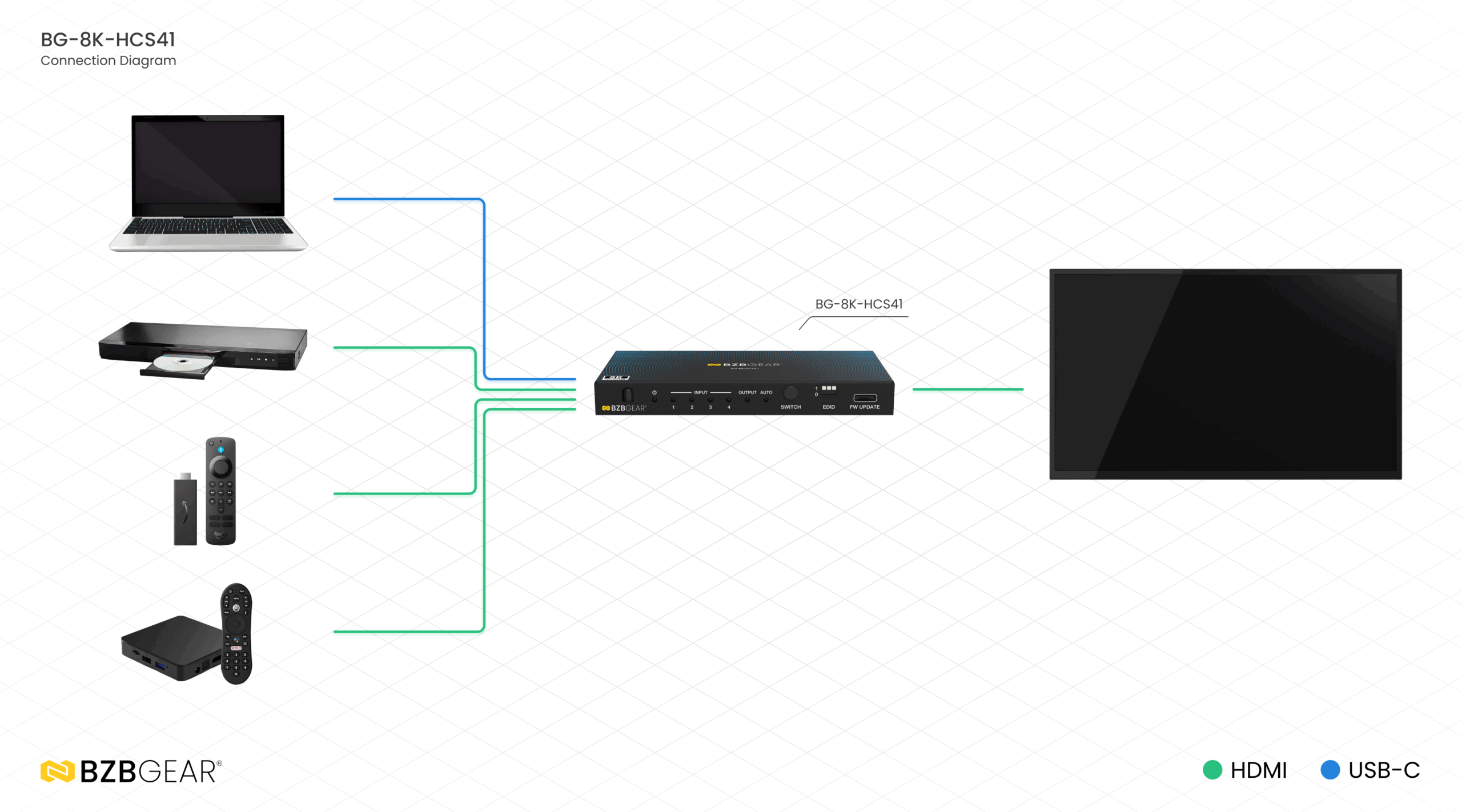 BG-8K-HCS41 är byggd för att möta den nya generationens bild- och ljudkrav. Med tre HDMI 2.1-ingångar och en USB-C-ingång kan användaren enkelt koppla in allt från spelkonsoler och laptops till avancerade mediaspelare. Resultatet blir en jämn och förlustfri växling mellan källor – utan kompromisser i bildkvalitet. Stöd för 8K@60Hz och HDR10+, Dolby Vision och HLG ger liv åt varje detalj, vare sig du redigerar film eller streamar sport i högsta upplösning.