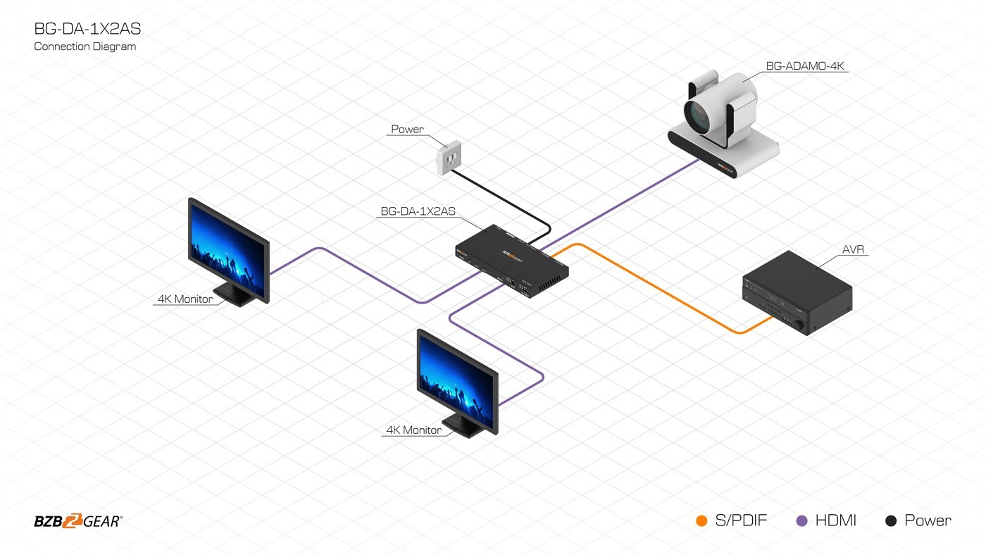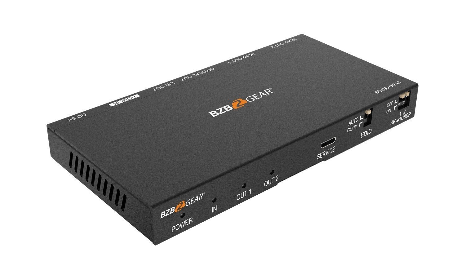 Utöver sina videofunktioner erbjuder BG-DA-1X2AS även ljudextraktion via optisk och 3,5 mm stereo-utgång, vilket gör det möjligt att skicka signaler till externa ljudsystem. Splittern stöder en mängd olika ljudformat, inklusive LPCM, Dolby Digital/Plus/EX, Dolby True HD, DTS, DTS-EX, DTS-96/24, DTS High Res, DTS-HD Master Audio och DSD, vilket gör den idealisk för professionella ljud- och videoinstallationer.