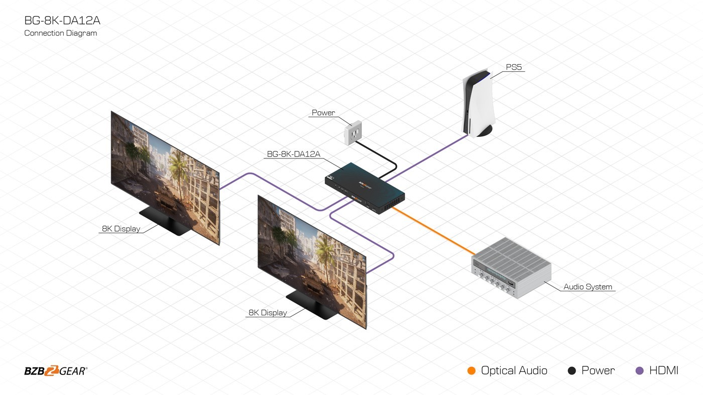 För spelare stöder BG-8K-DA12A 4K-upplösning vid 120Hz, vilket ger enastående detaljnivå och mjuk bild för en mer realistisk och responsiv spelupplevelse. Dessutom stöds VRR, FVA och ALLM, vilket ger ännu jämnare och mer responsivt gameplay på kompatibla enheter. Oavsett om du tävlar eller bara vill få ut det bästa av dina favoritspel, garanterar denna splitter optimal prestanda med hög upplösning och höga bildfrekvenser.