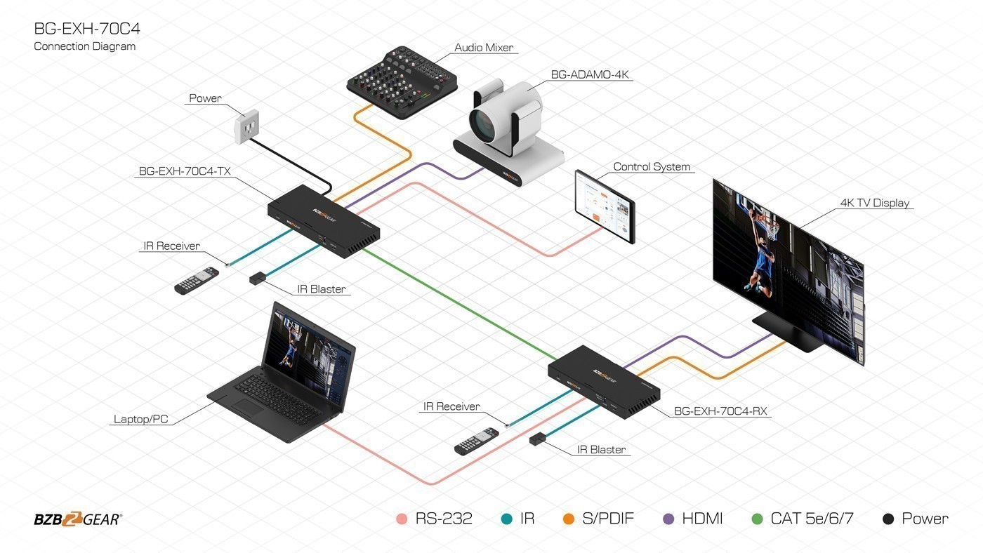 BG-EXH-70C4 stöder även dubbelriktad IR- och RS-232-signalgennomföring, vilket gör det möjligt att styra källenheter eller bildskärmar från en avlägsen plats. Dessutom stöder enheten ARC-funktionen, vilket gör det möjligt att skicka ljud från TV:n tillbaka till hemmabiosystemet utan extra kabel.