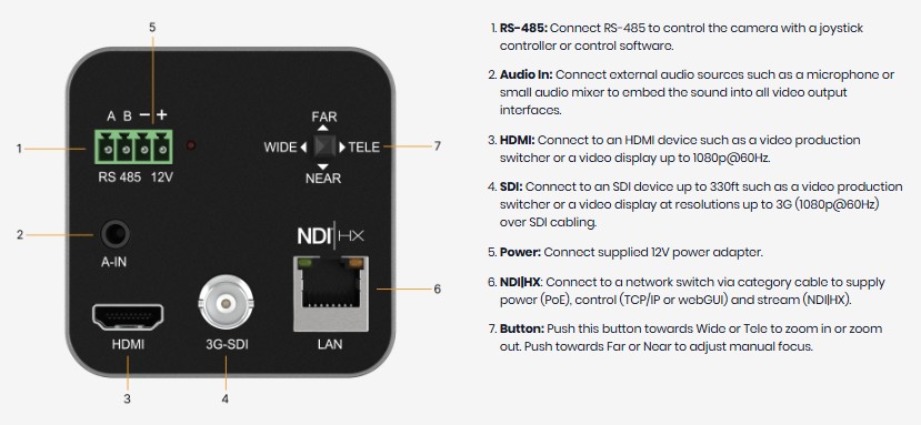 Kamerorna är utformade för fjärrinstallationer och erbjuder styrning via både seriella gränssnitt (RS485) och Ethernet. Med ett användarvänligt webbgränssnitt finns ett komplett utbud av bildjusteringsfunktioner tillgängliga. Kompatibiliteten förbättras ytterligare genom stöd för PELCO-D, PELCO-P, VISCA och IP-VISCA, vilket gör det enkelt att integrera kameran med kompatibla joystickkontroller.