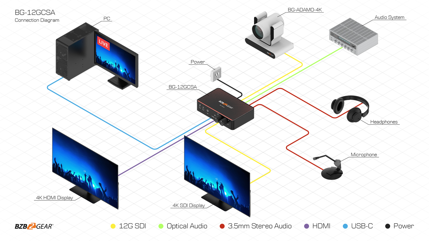 Användare kan ansluta BG-12GCSA till en 4K2K@60 källa och spela in Ultra HD (4K2K@30) video. Enheten kan också fånga och visa original, okomprimerad SDI-video med mer realistisk färgåtergivning. BG-12GCSA använder teknik med stor bildbuffert, vilket effektivt undviker video-tearing. Den höga samplingshastigheten och noggrannheten säkerställer att inspelad video har hög skärpa, rika detaljer och färre färgkanter