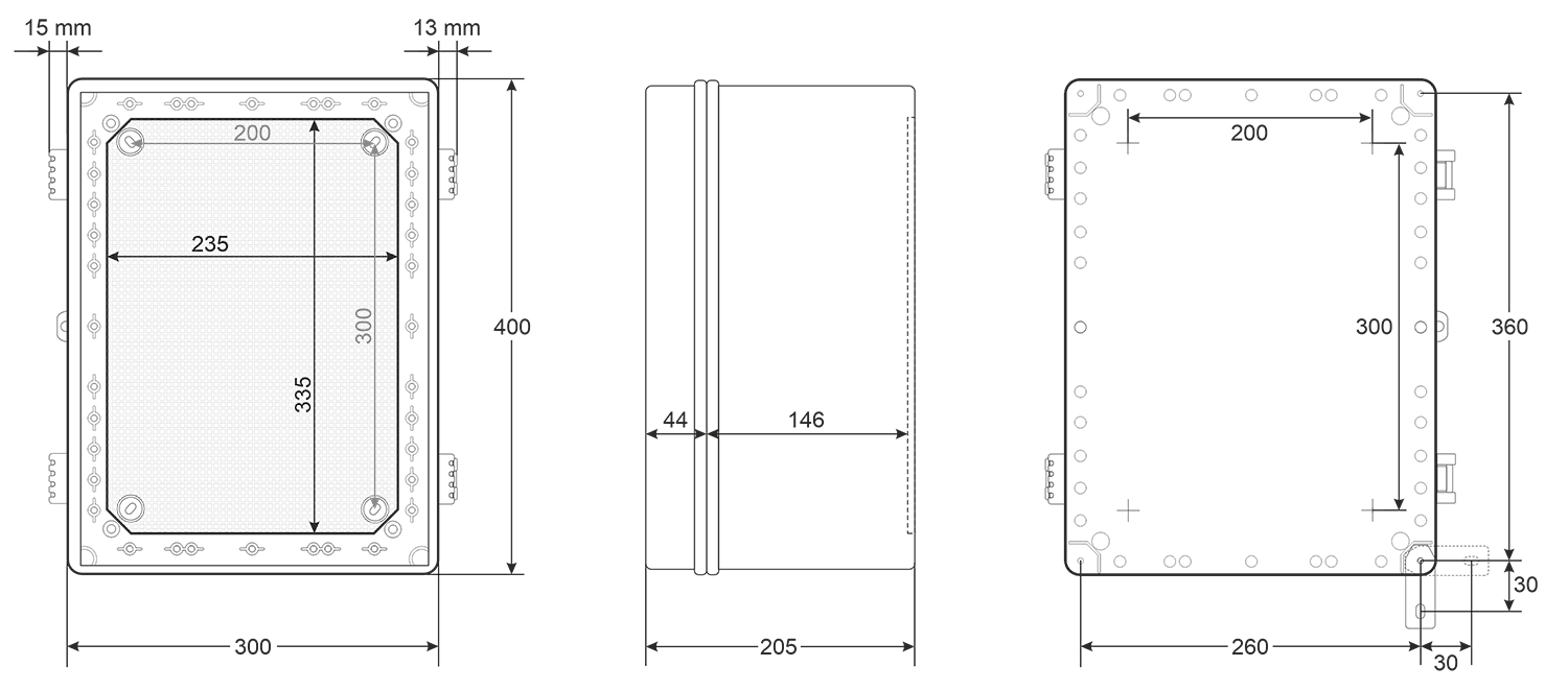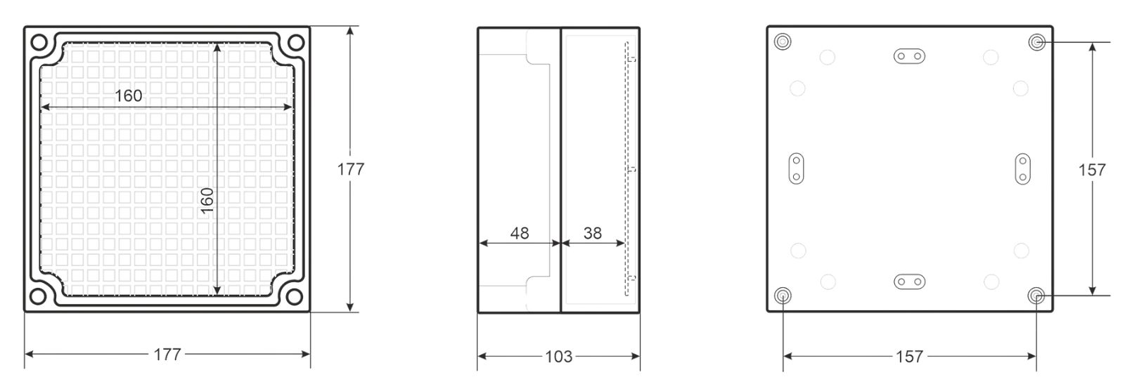 Serie omfattar ett flertal storlekar – från 177x177x103 mm till hela 395x600x225 mm. Det ger installatörer och tekniker frihet att välja rätt kapsling utifrån behov, oavsett om det gäller att skydda ett enskilt styrkort i ett passersystem eller att samla hela elfördelningen i en större installation. Alla modeller har perforerad monteringsplåt som gör det enkelt att montera komponenter med precision.