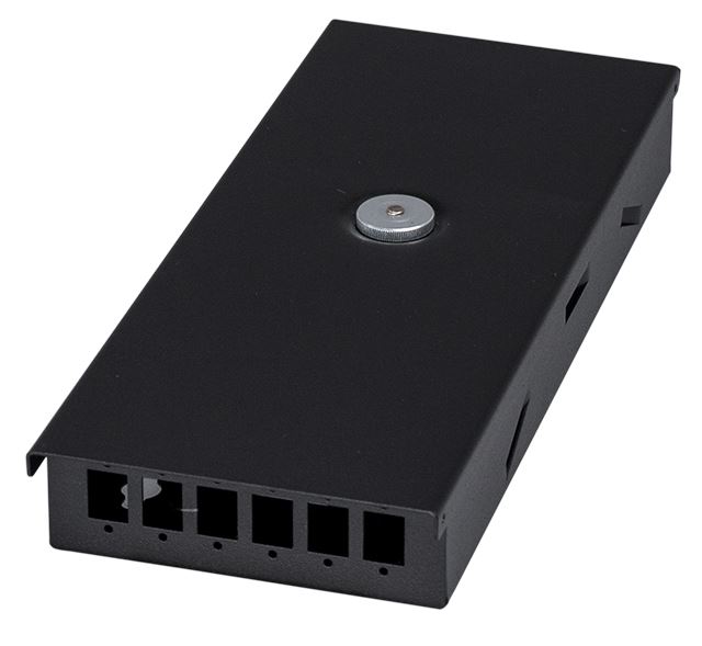 Lådan kommer färdig med förborrade hål för enkel och snabb montering. Plats för två stycke förskruvningar (13,5mm) för inkommande/utgående fiber. Du låser enkelt fast både din fiberkassett (ingår inte) och locket med två M5 räfflade skruvar.