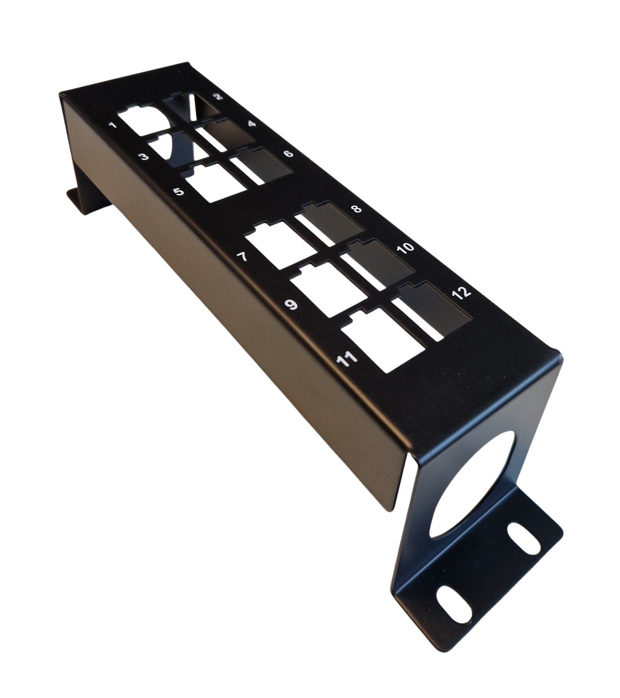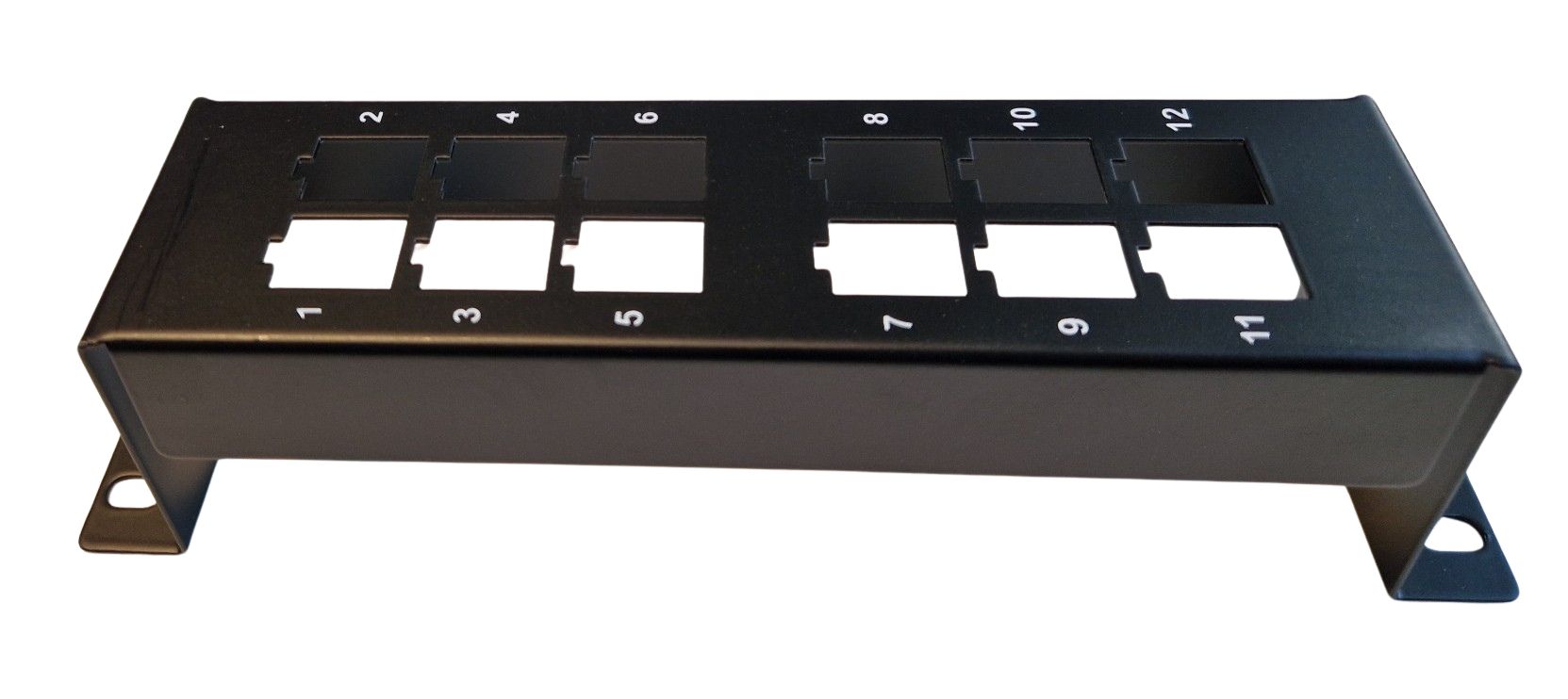 Denna panel är konstruerad för att monteras i 10-tums rack eller direkt på vägg, vilket gör den idealisk för användning i både små kontorsmiljöer och hemmalösningar. Med 12 uttag för Keystone-kontakter har du möjlighet att använda en mängd olika moduler, som nätverkskontakter, fiber eller HDMI, beroende på vad din installation kräver.
