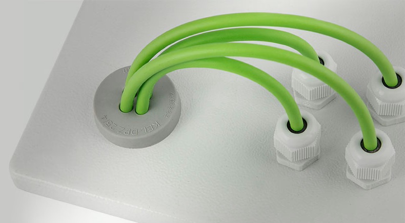 Flexibel kabeldragning – upp till 35 kablar kan föras igenom en enda platta, beroende på modell och kabeldiameter.
