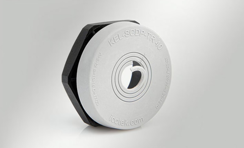 Icotek® -genomföring med eller utan låsmutter beroende på paneltjocklek. Med kapslingsklass IP65 passar dessa kabeldiametrar mellan 5–23 mm. Läs mer