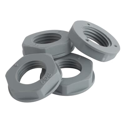 ABB/Harnessflex låsmutter för respektive gänga och storlek för att matcha kopplingar och genomföringar. I vibrerande miljöer är detta särskilt viktigt för en långvarig säker anslutning för fordon, jordbruksmaskiner, industrimaskiner och andra miljöer med rörelse och påfrestning.