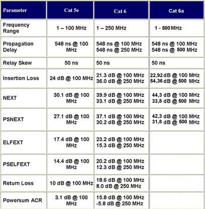 Som bekant gäller för Cat.5E 100MHz bandbredd, för Cat.6 250MHz och dubbelt upp för Cat.6A, 500 MHz. Tittar man noggrant ser man också att ledarna i RJ45-kontakten är placerade lite annorlunda jämfört med tidigare. Detta för att reducera överhörningen mellan närliggande kablar, s k "alien crosstalk".