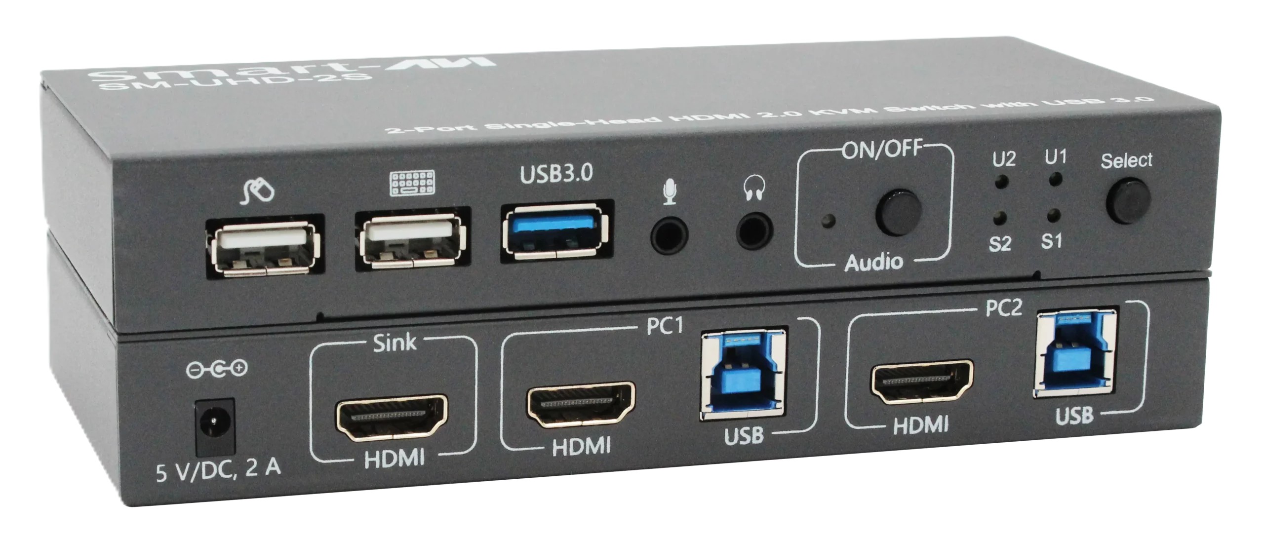 Att arbeta med flera datorer behöver inte innebära röriga skrivbord eller trassliga kablar. Med denna HDMI 2.0- och HDCP 2.2-kompatibla KVM-switch styr du två datorer med samma tangentbord, mus och monitor. En tryckning på en knapp eller en snabbkommandotangent räcker för att växla – perfekt för IT-tekniker, grafiker eller utvecklare som arbetar parallellt på flera system.
