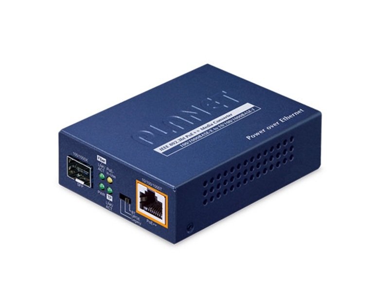 Konvertern stödjer flera PoE-lägen – 802.3bt, UPOE och Legacy – som enkelt väljs via en DIP-switch. Den känner automatiskt igen den anslutna enhetens behov och skyddar utrustningen från felaktig strömförsörjning. Funktionen är särskilt användbar vid äldre eller icke-standardiserad utrustning där automatisk kompatibilitet inte är självklar.