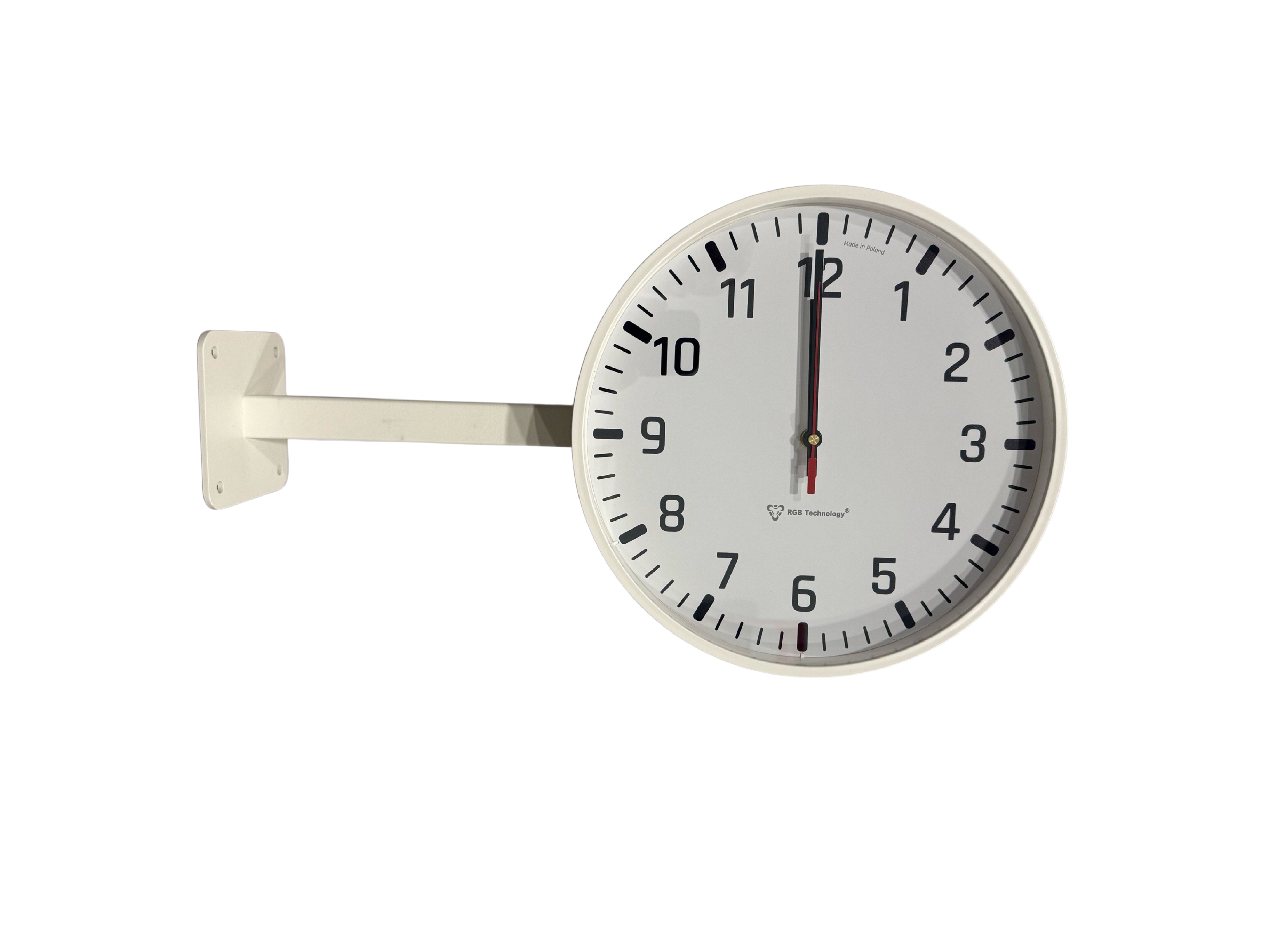 Väggfäste som möjliggör montering av två klockor rygg mot rygg. Perfekt för korridorer eller andra större utrymmen där du önskar hög läsbarhet från alla håll. Läs mer