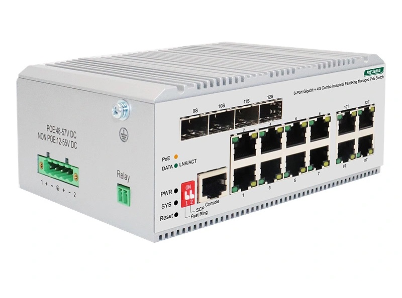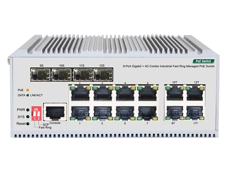 En industriell hanterad PoE-switch med 8*10/100/1000 Mbps RJ45-portar och 4 Gigabit Combo-portar. Portar 1-8 RJ45 stöder PoE-strömförsörjning, med en maximal effekt på 30W för varje port. Den har stöd för statiska ruttfunktioner, erbjuder perfekt säkerhet, QoS och gott om VLAN-funktioner samt har ringnätsfunktion, kan bilda ett ringnätverk, växla mellan hand i hand för att skapa en ringnätverkstopologi, redundans, hög tillförlitlighet kan göra att en länk i ett ringnätverk kan kopplas ner utan att påverka dataöverföringen i nätverket. Läs mer