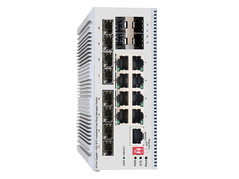 En industriell, hanterbar switch designad för att klara tuffa miljöer och samtidigt garantera hög tillförlitlighet och säker dataöverföring. Med stöd för ringnätverk, åtta Gigabit RJ45-portar och tolv SFP-fiberportar erbjuder den både flexibilitet och redundans. Perfekt för kritiska applikationer inom transport, säkerhet och telekommunikation där stabilitet är avgörande – även vid extrem kyla eller värme. Läs mer