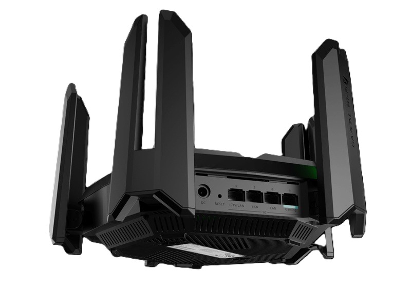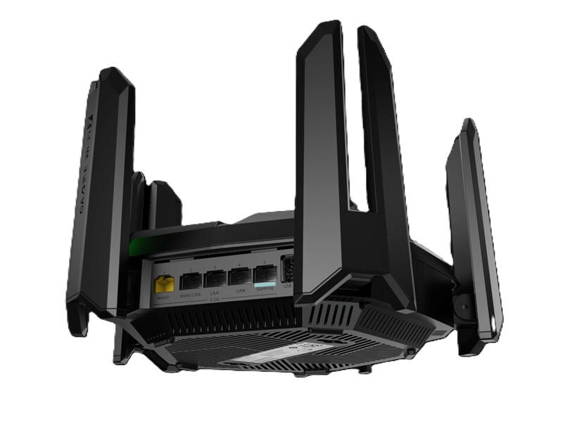 En router i den absoluta prestandatoppen. Med stöd för Wi-Fi 7 (IEEE 802.11be) når den trådlösa hastigheter upp till 7130 Mbps. Tekniker som Multi-Link Operation (MLO) och 1024-QAM bidrar till både stabilitet och snabbhet – även när flera band används samtidigt. Nio externa antenner och lika många förstärkare (FEMs) gör att signalen penetrerar flera väggar, vilket minskar täckningsluckor.