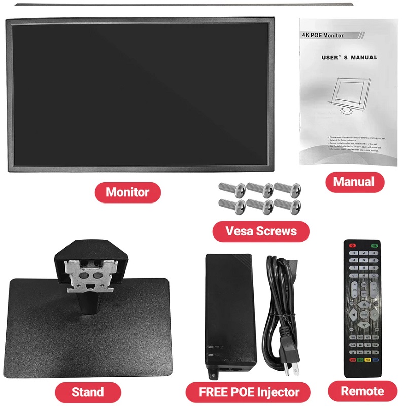 POE-driven 28” 4K-monitor som får ström via en enda nätverkskabel (t.ex. CAT5 eller CAT6). Du behöver inte anlita en elektriker för att installera ett uttag i närheten. Dra bara en standardnätverkskabel från POE-injektorn/-switchen till monitorn så får den ström. Perfekt för CCTV, digital skyltning, anpassade projekt, detaljhandel, sjukvård osv. Utformad för att vara påslagen 24/7.