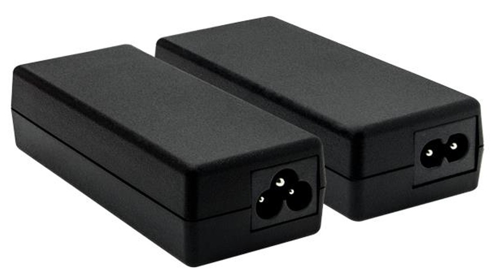 Levereras med 1,2m lång anslutningskabel som har C6-kontakt mot nätadaptern och DC-kontakt med anslutning mot 2,1mm centrumstift (5,5mm ytterdiameter).
