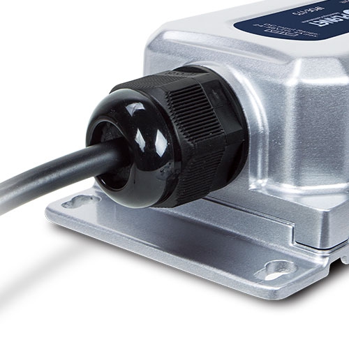Enheten har tre vattentäta kabelgenomföringar för direktanslutning och är utrustad med 6 kV överspänningsskydd samt 8 kV ESD-skydd på Ethernet-portarna vilket gör den lämplig för miljöer med elektromagnetiska störningar och blixtnedslag.