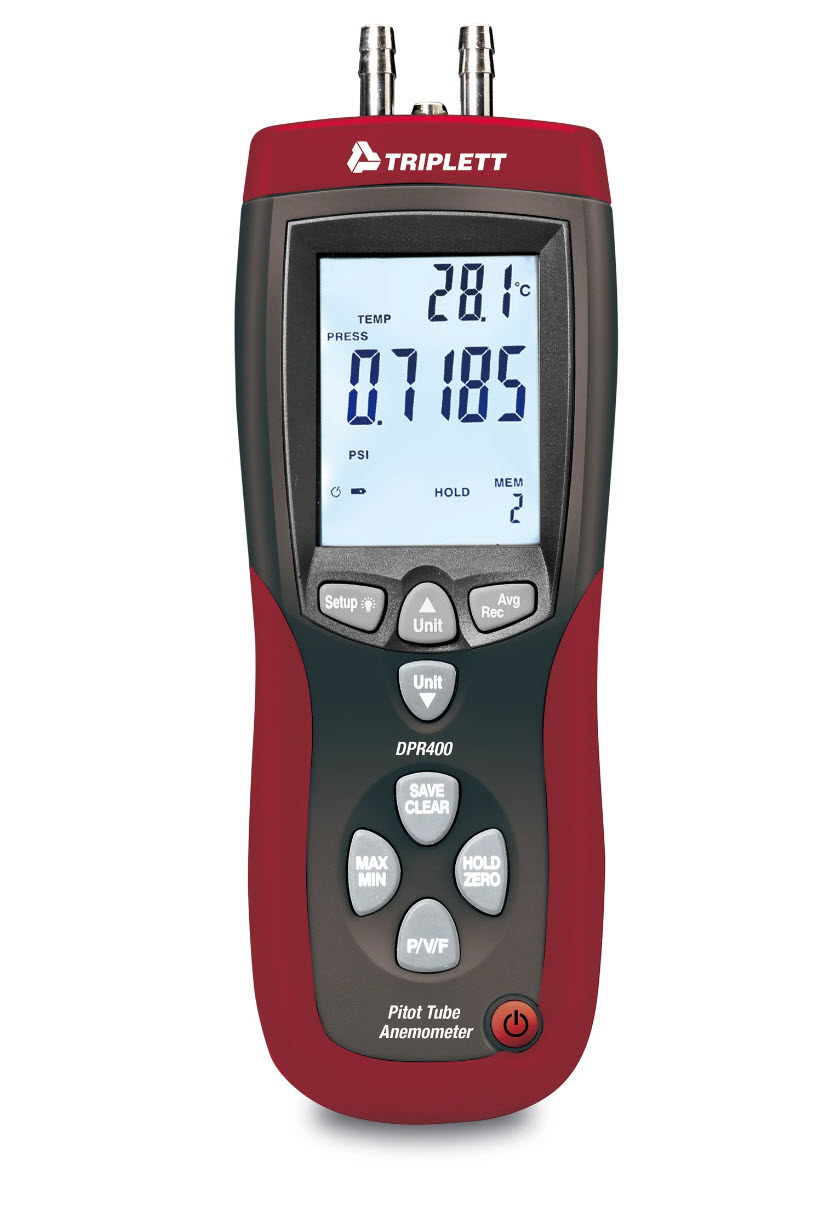 Visar samtidigt tryck, lufthastighet eller luftflöde, samt temperatur.