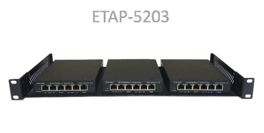 ETAP-5203 kan monteras i rack med 19" monteringshårdvarukit , som kan köpas separat fråga om behov finns.