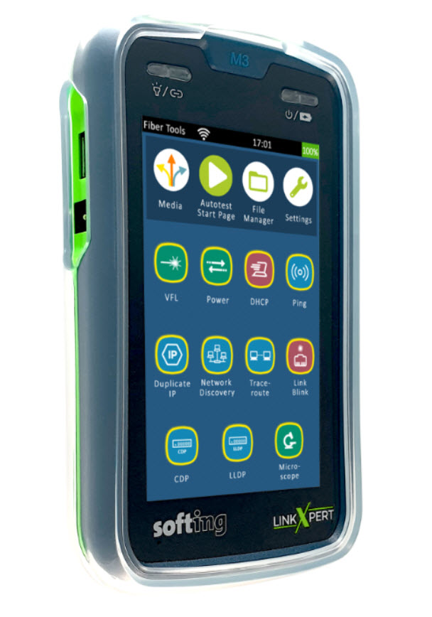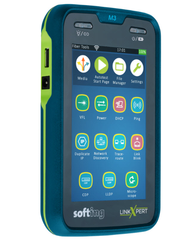 Softing LinkXpert M3 är en kompakt allt-i-ett-testare för koppar-, fiber- och Wi-Fi-nätverk, designad för effektiv felsökning och dokumentation. Enheten erbjuder avancerade funktioner som 90W PoE-lasttest, 10 Gbit/s detektering och automatiserade testrapporter via en 5,25" pekskärm.