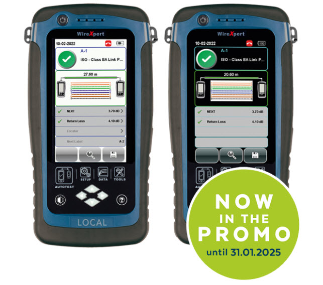 WireXpert 4500 är ett instrument som används för godkännandemätningar i enlighet med internationella standarder upp till 2 500 MHz och förberedelse för fiberoptik- och Cat 8-certifieringar. Klar för användning med Cat 6A/klass EA-mätset (innehåller permanent länkadapter och mätkabel, samt kanaladapter). Läs mer