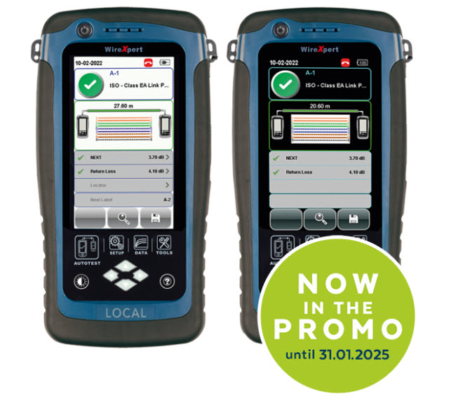 WireXpert 500 Cat 6A-kopparkabelcertifieringar kan uppgraderas till WireXpert 500-PLUS som inkluderar fibercertifiering enligt Tier 1, samt även uppgraderas till WireXpert 4500 för att inkludera Cat 8-certifiering.