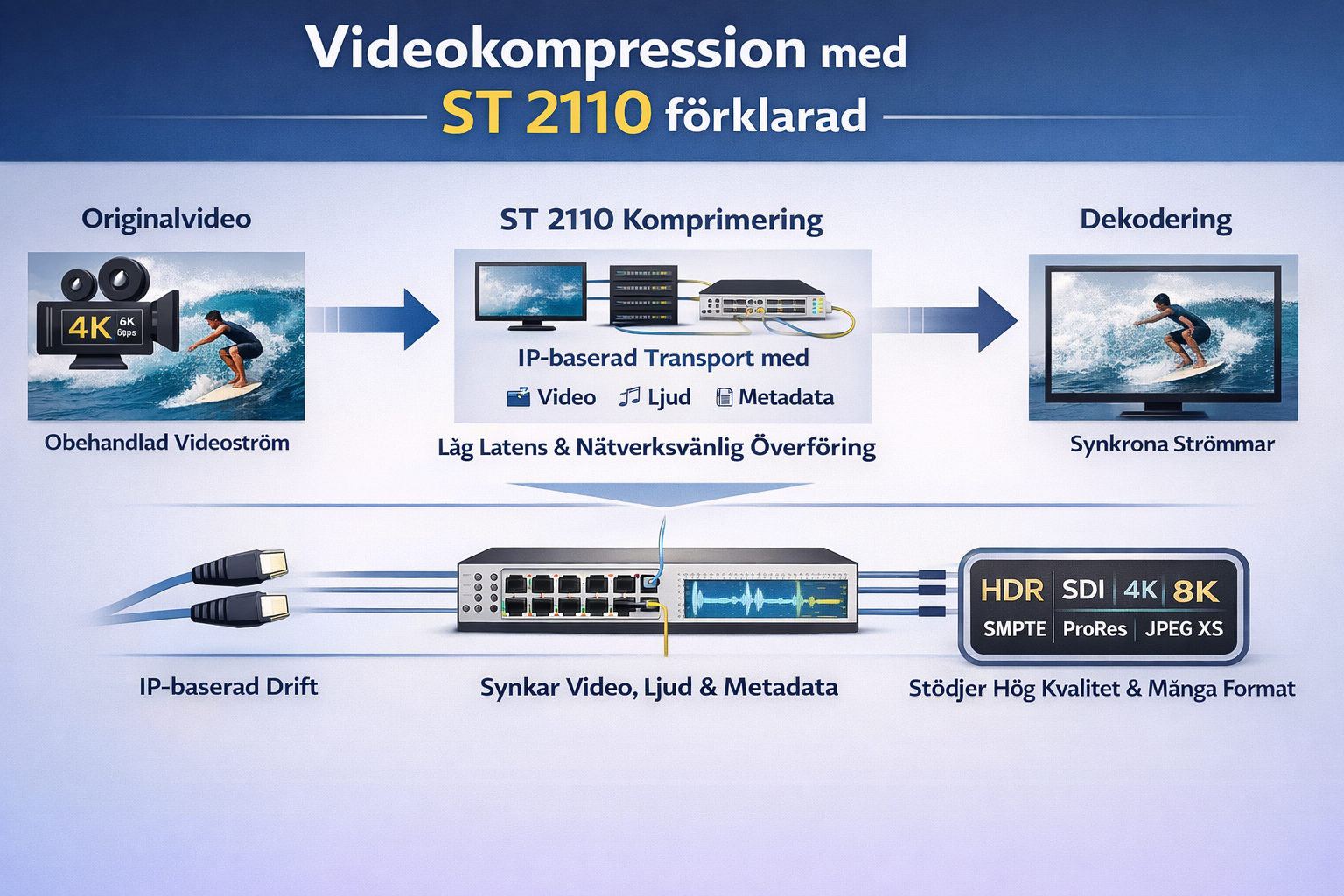 ST2110 är ett RTP (real-time transport protocol), på svenska realtidsprotokoll, som arbetar med PTP (Precision Time Protocol), ett nätverksprokoll som kräver särskilda nätverkswitchar Standarden tillåter flera varianter där ST2110-10 är helt okomprimerat och ST2110-22 är en lätt komprimerad version. De flesta ST2110 system använder JPEG XS formatet för video. Vilket ger en fördröjning med mindre än 1 millisekund.