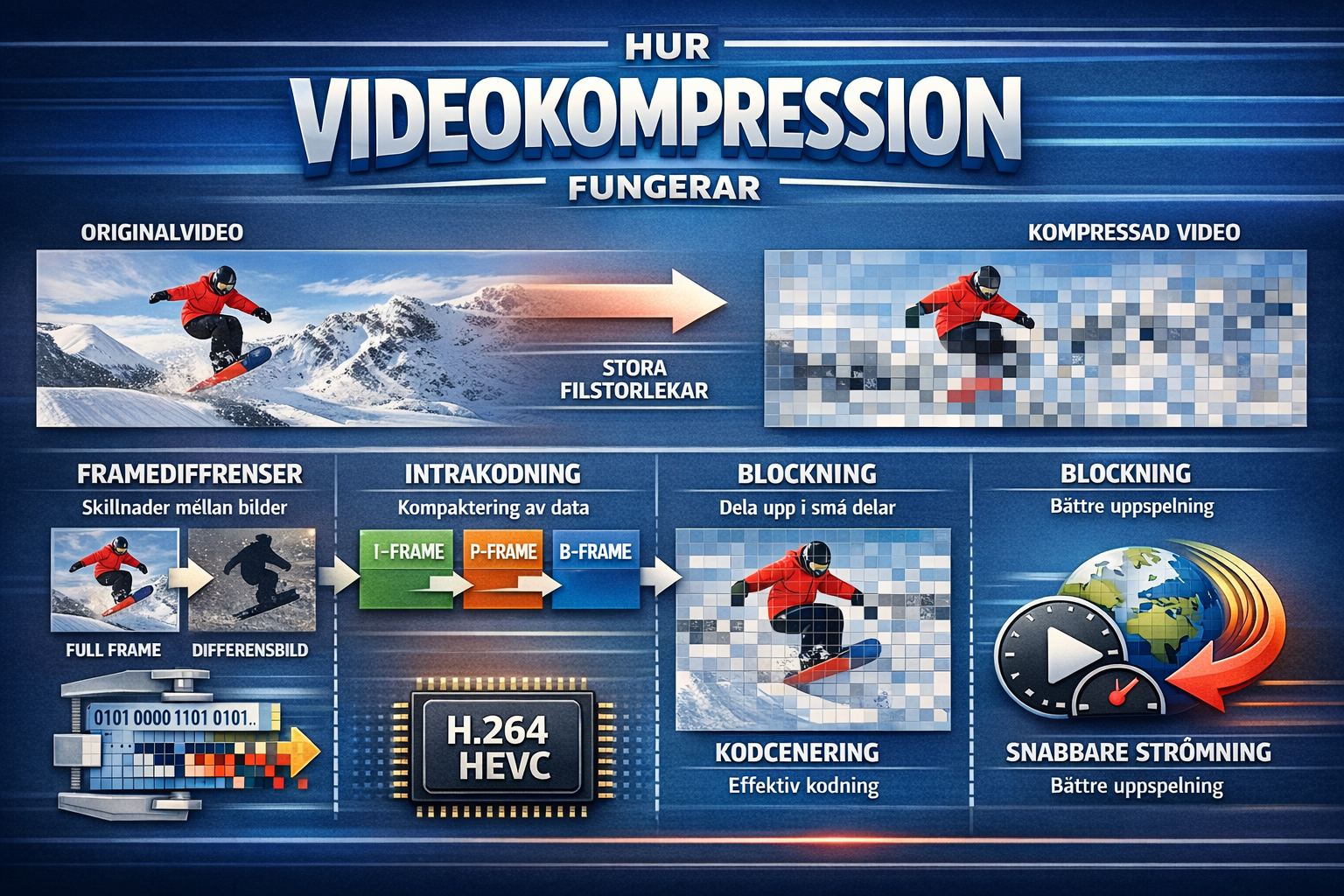 När vi pratar om streaming filformat finns en uppsjö av termer som inte alltid är så lätta att förstå. Vi börjar från början: dels har du själva bildströmmen som lite grovt kan skapas på 2 sätt: antingen registrera du bild för bild, som en gammal dags film, eller så skickar du förändringen av filmbilden.